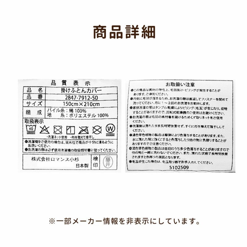 ■掛け布団カバーのみの品です。他のカバーや布団本体は付属しません。ご注意ください。
