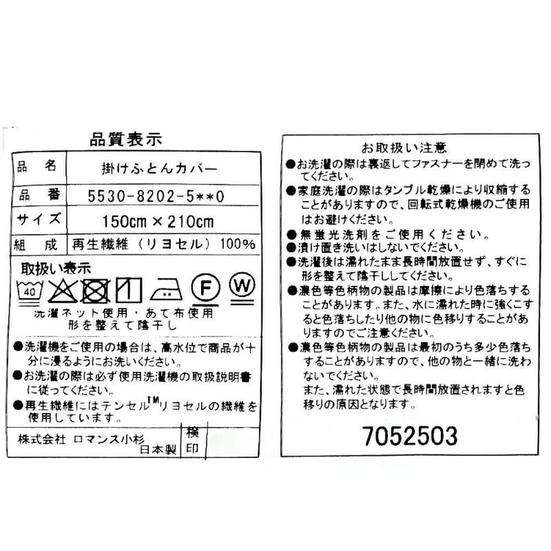 • Reyuanブランド掛けカバー(5530-8202)のロマンス小杉は本製品へのテンセルブランドのライセンシー(ライセンス番号:PLIC2215363)です。