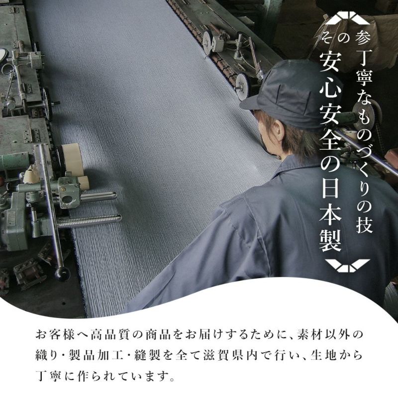 お客様へ高品質の商品をお届けするために、素材以外の織り・製品加工・縫製を全て滋賀県内で行い、生地から丁寧に作られています。