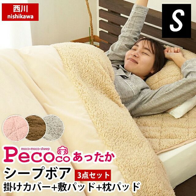 \3点セット/ あったか掛け布団カバー 毛布 敷きパッド まくらパッド 3点セット ペココ pecoco