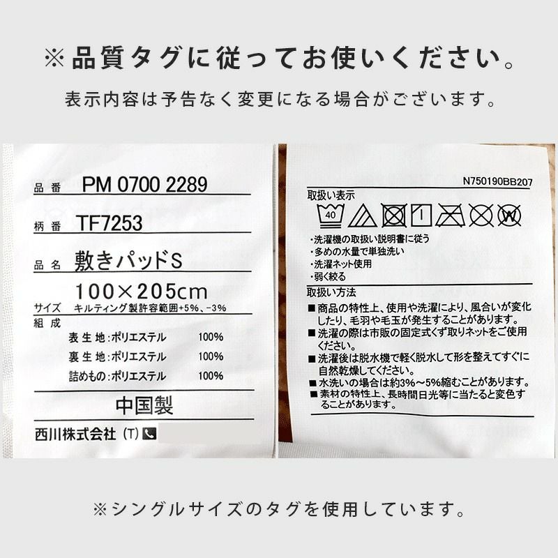 敷きパッド:約100×205cm