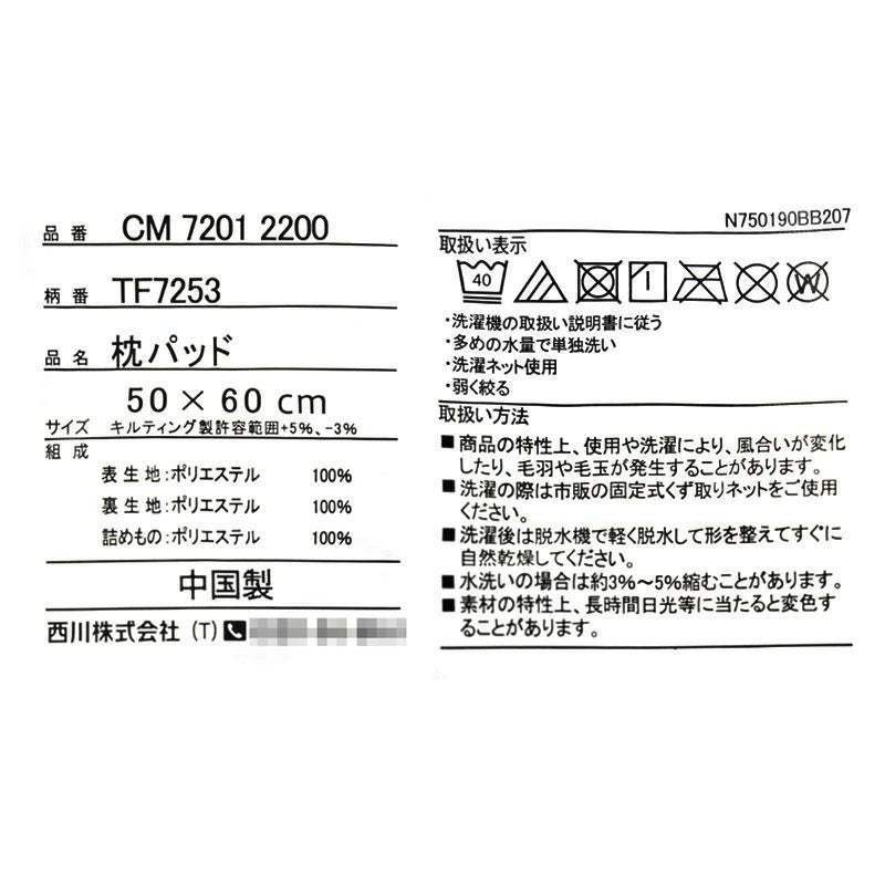 枕パッド:約50×60cm