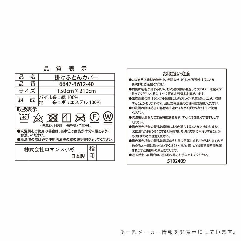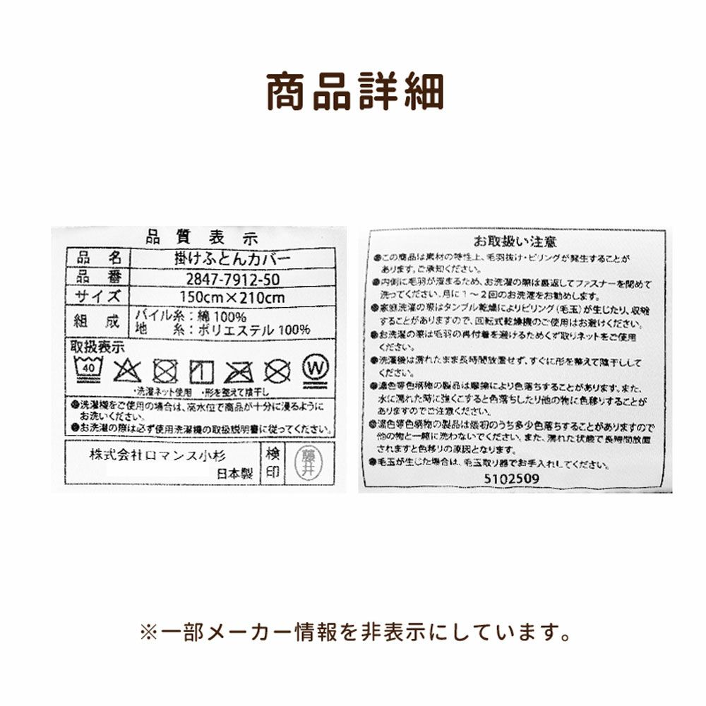 他の画像を見る 即日発送 会員セール 掛けふとんカバー ロマンス小杉 日本製 花柄 あったか シングル 150×210cm ¥ 18,700 税込 会員セール価格 ¥ 16,830 税込 お気に入りに登録する