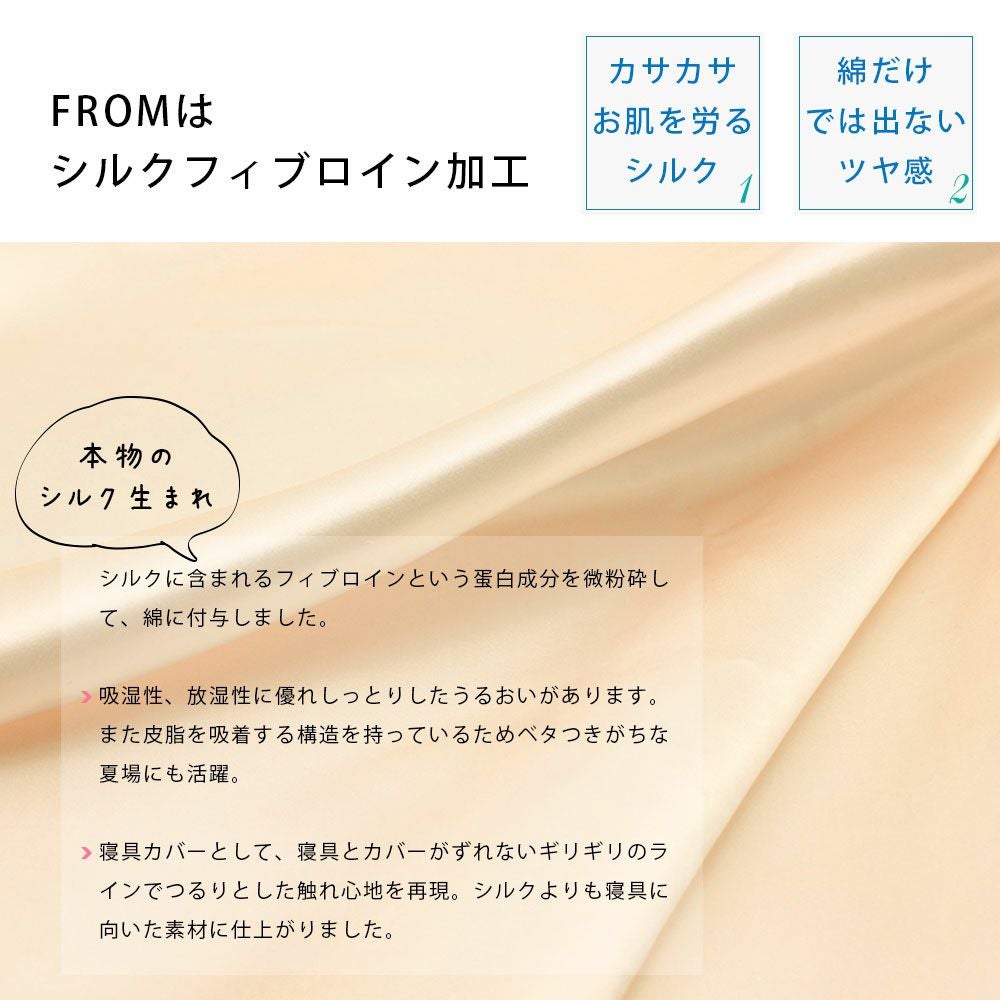 肌や髪にやさしいシルクを使用した、しっとりなめらかな枕パッドです。シルク特有の高い保湿性と吸放湿性で、季節を問わず快適な使い心地。縦糸にシルク、横糸にはコットンを使い、肌に直接触れる表面部分にシルクが浮き出るよう朱子織りで仕上げています。コットンを使用することで強度もアップ。ゴムバンド付きでズレにくく、洗濯機で洗えてお手入れも簡単です。