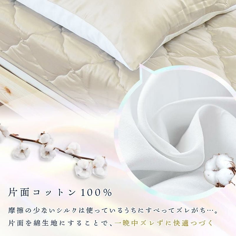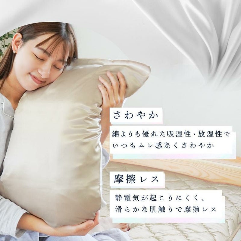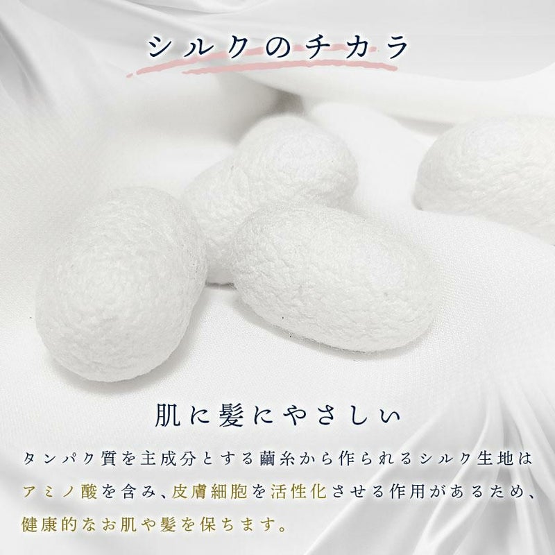 シルクは髪にも肌にもやさしい素材。また吸湿性や放湿性に優れた特性をもつ繊維で、1年中あなたの快適な眠りをサポートします。