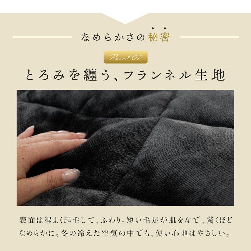 「纏生(まとい)」シリーズはなめらかフランネル素材を使った、寒い冬を暖かく過ごすためのファブリック。まとった途端、ほうっと溢れる至福のため息。とろける寝具に優しく包まれてしあわせ気分。