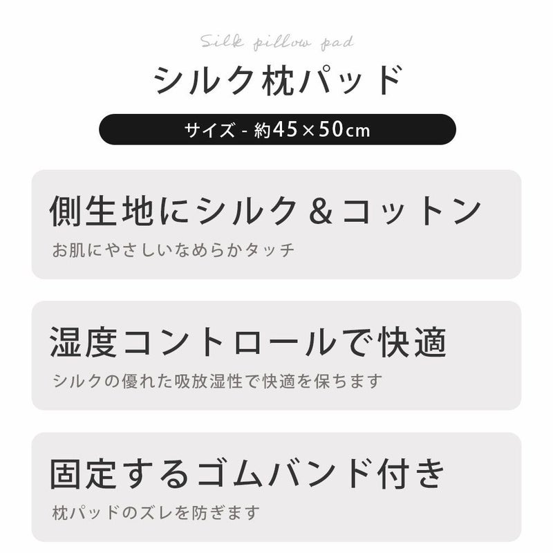 6. シルク 枕パッド 日本製 45×50 シルクサテン