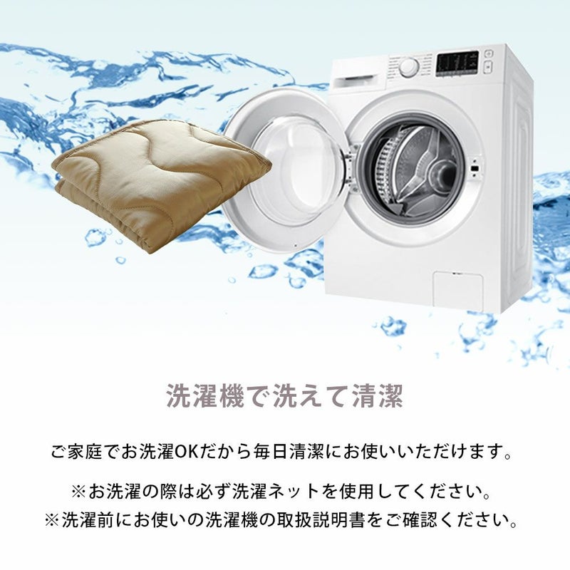 ご家庭でお洗濯OKだから毎日清潔にお使いいただけます。※お洗濯の際は必ず洗濯ネットを使用してください。※洗濯前にお使いの洗濯機の取扱説明書をご確認ください。