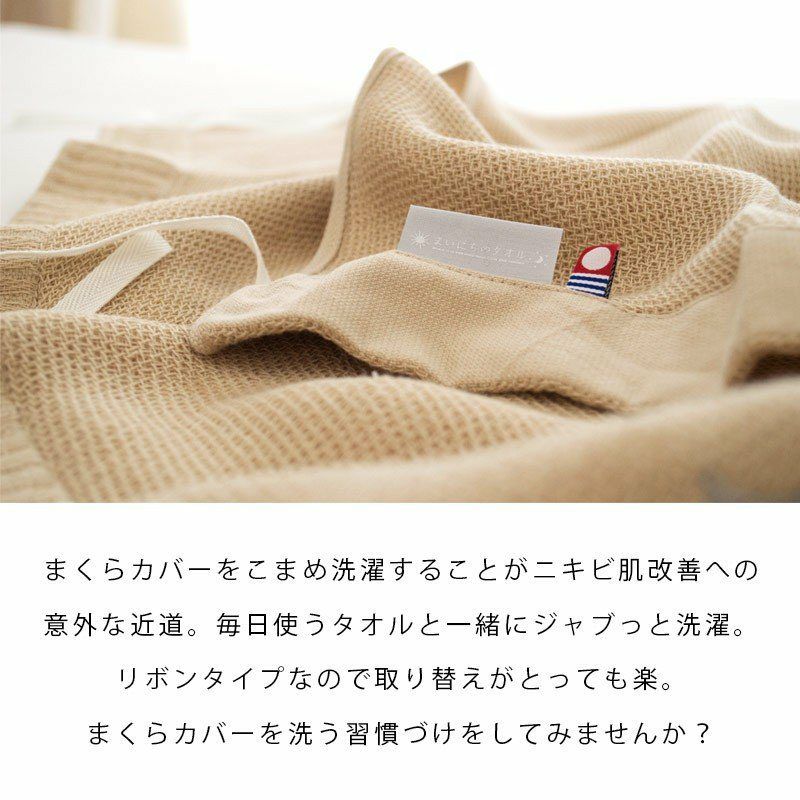 昔ながらの和晒製法で仕上げた、やわらかな2重ガーゼ綿100%の枕カバーです。吸水性に優れ、寝汗をすっと吸い取ってくれるから、さらりと快適。洗うたびに肌に馴染み、ふんわりやさしい風合いを育てていきます。乾きやすいのも嬉しいポイント。全開ファスナー付きで着脱も簡単。安心の日本製です。