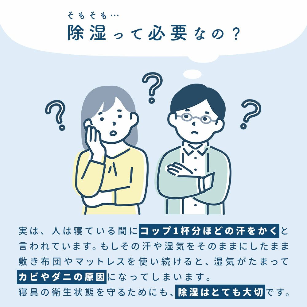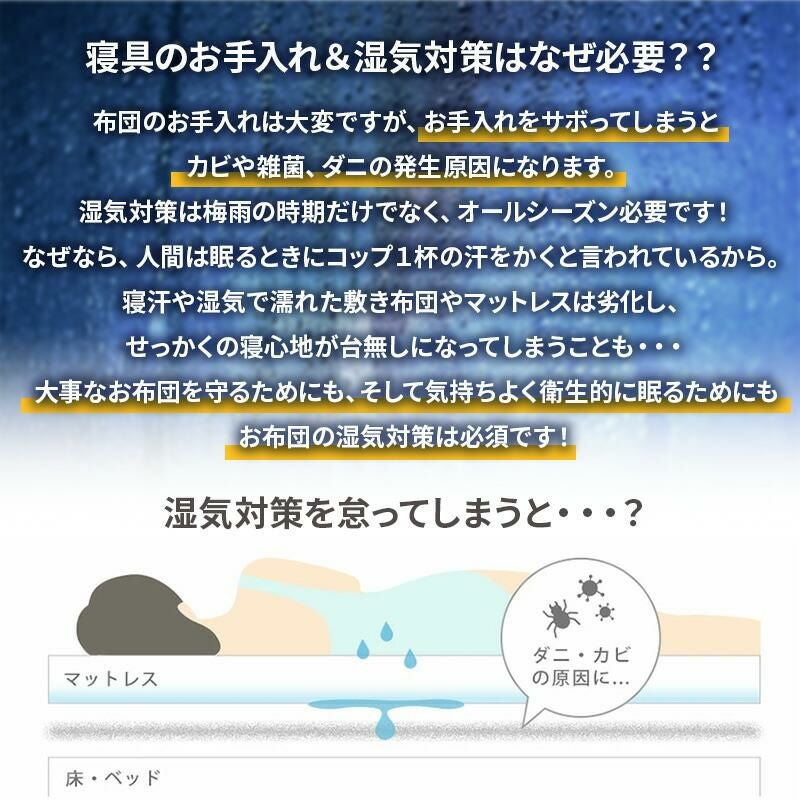 こまめな天日干しが難しい環境でも、寝具の湿気対策を手軽に行えるのが魅力です。