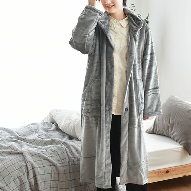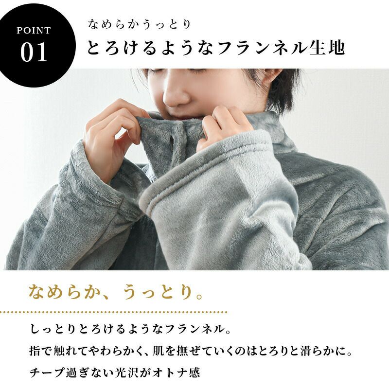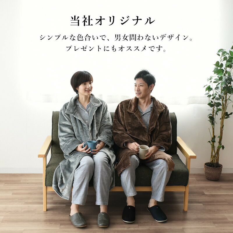 着る毛布パジャマボアルームウェアガウン部屋着長袖あたたかいふわふわもこもこ秋冬ニューマイヤーマイクロフランネルロング丈フリーサイズフードなしポケットボタンブラウングレーフリーサイズ男女兼用