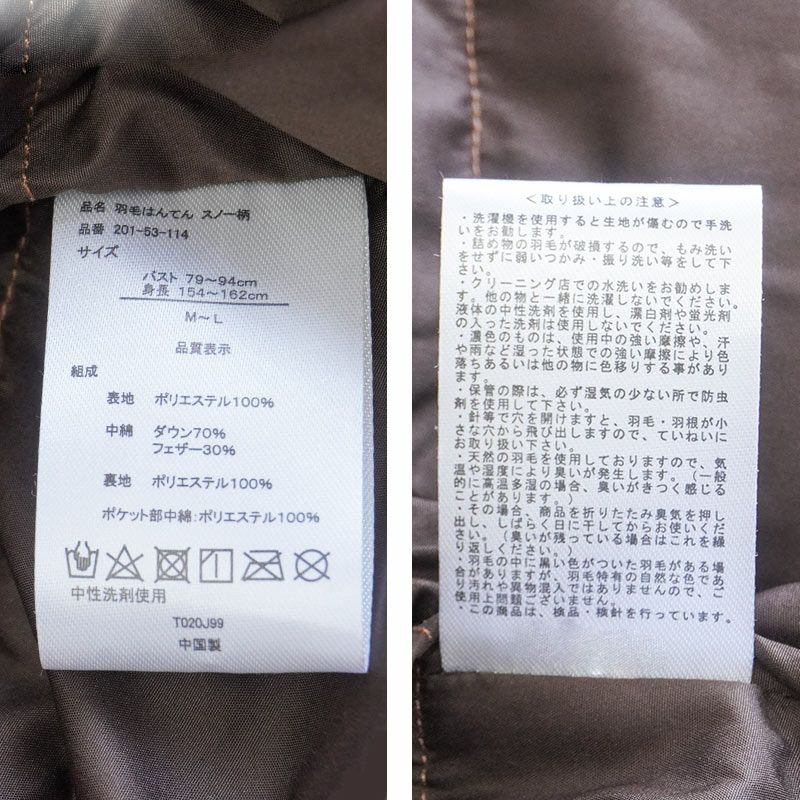 【販売終了】ふとんやさんのこだわり 羽毛の半纏 ダウン70% M~Lサイズ