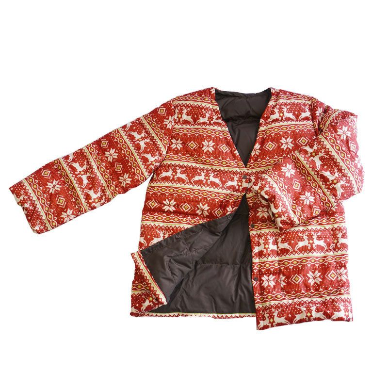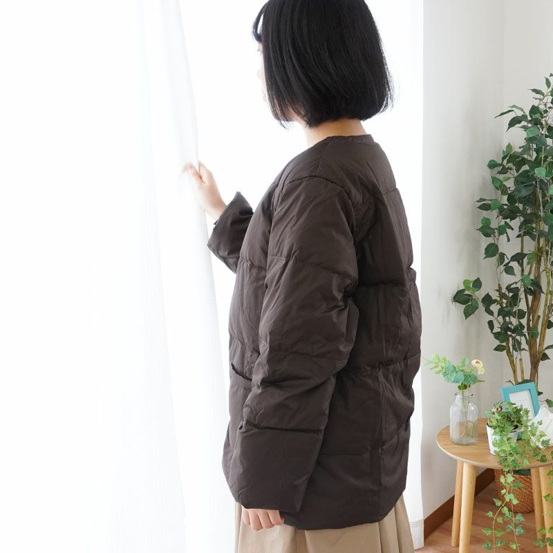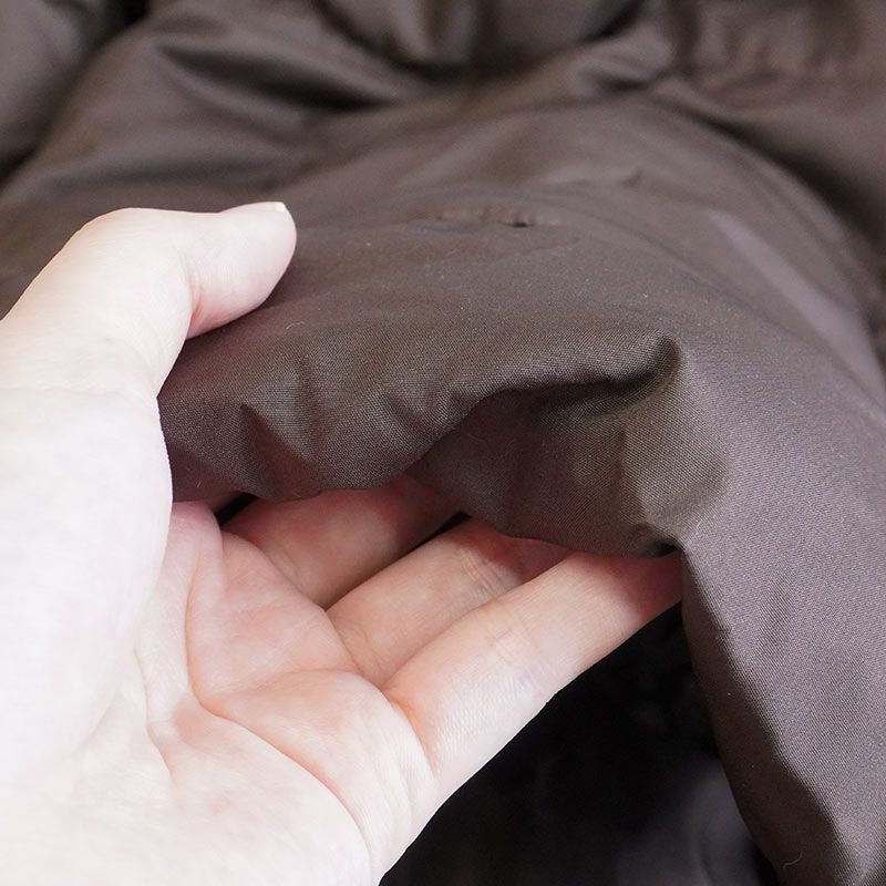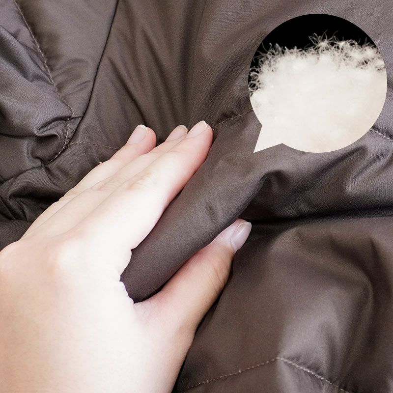 詰め物に羽毛を使用しているので、一般的なわた素材と比べてふんわりと軽くて快適な着心地。保温性も断然違います。まるで、羽毛布団を着ているかのような暖かさです。