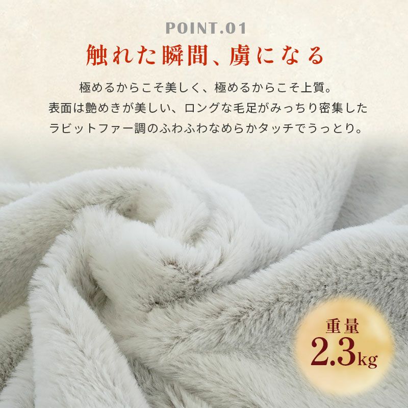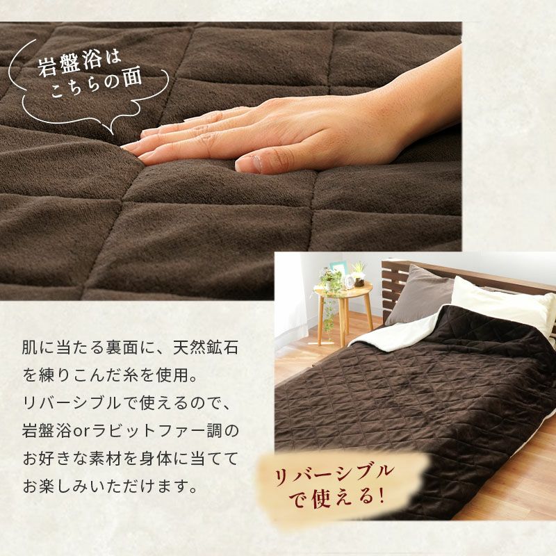 しっとりふわふわ毛足の長いラビットファー調の面(グレー)と、岩盤浴面(ブラウン)のリバーシブル!お好きな面をお使いいただけます。