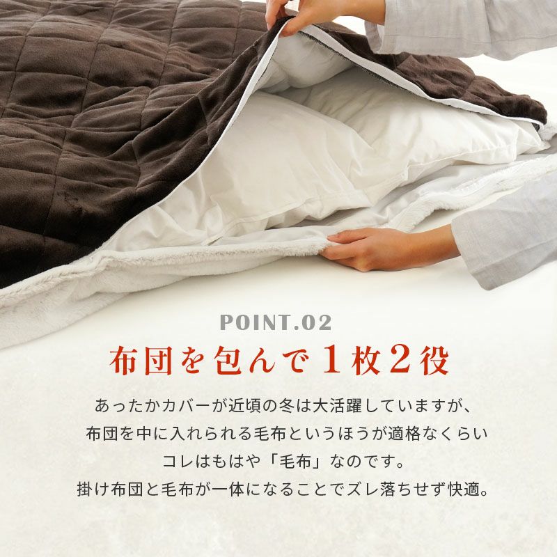 毛布としてもカバーとしても使える、1枚2役な暖か寝具です。