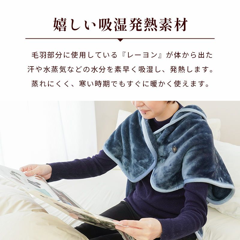 毛羽部分に使用している『レーヨン』が体から出た汗や水蒸気などの水分を素早く吸湿し、発熱します。蒸れにくく、寒い時期でもすぐに暖かく使えます。