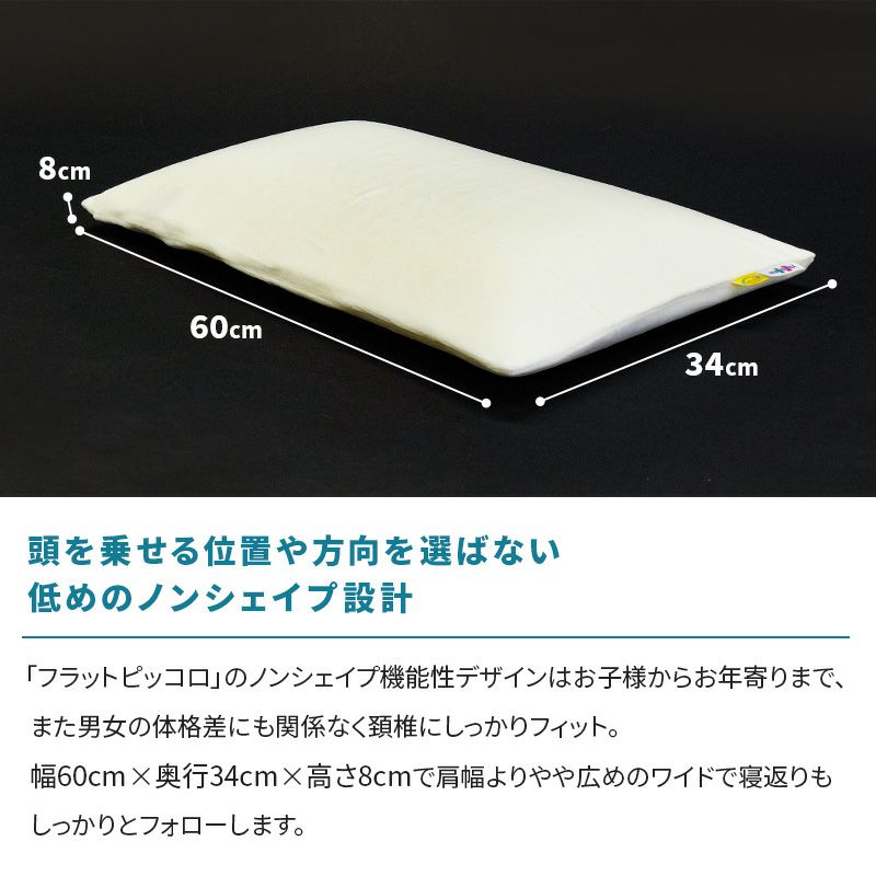 「フラットピッコロ」のノンシェイプ機能性デザインはお子様からお年寄りまで、また男女の体格差にも関係なく頚椎にしっかりフィット。