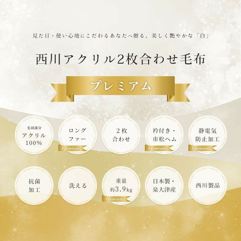 4. 眠りの恋人 ホワイト毛布プレミアム アクリル 毛布 厚手 ダブル 西川