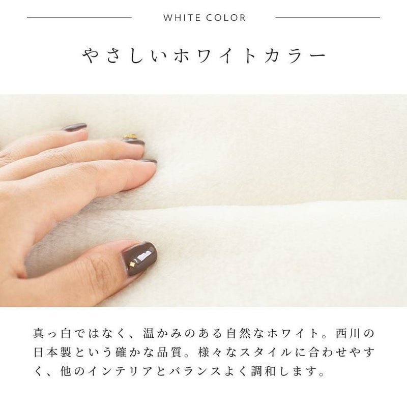 西川の日本製という確かな品質で、白いプレーンの毛布を作りました。お部屋にそっと馴染むのに、他のインテリアのカラーを最大限に引き立てます。