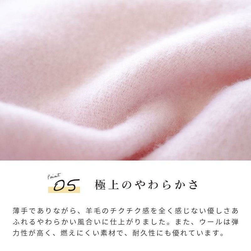 ウール(羊毛)といえば、基本的には洗えない素材。しかし、こちらの毛布は洗濯機でも洗えるように加工しています。そのため、ご家庭でのお手入れがしやすくなりました。 もし汚れても、いつでも洗えていつでも清潔。