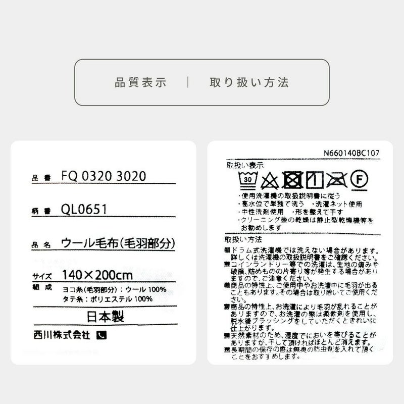 Qマーク付き(日本毛布工業組合の品質保証マーク)