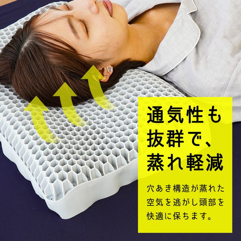 さらに、人間工学に基づくハニカム構造で効果的に圧力を分散。 体圧を分散する上層部と頭を支えるベース部の2層構造で快適な睡眠をサポートします。