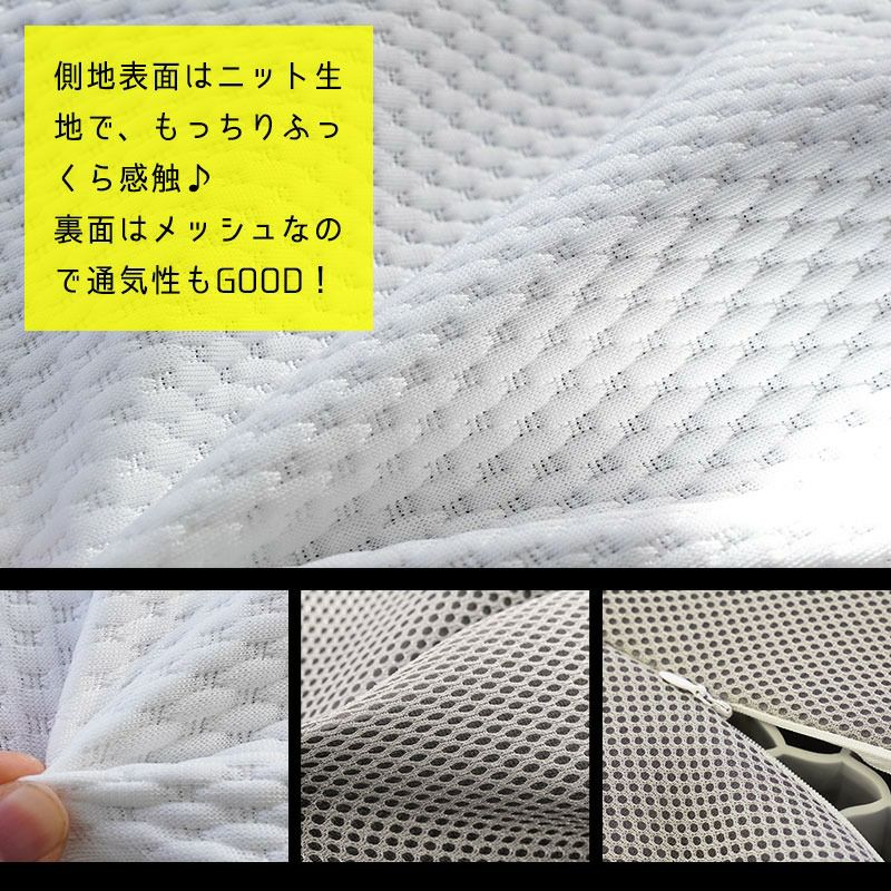 側生地を装着すると、枕がもっちりふっくらな感触に早変わり。裏面はメッシュなので通気性もGOOD!