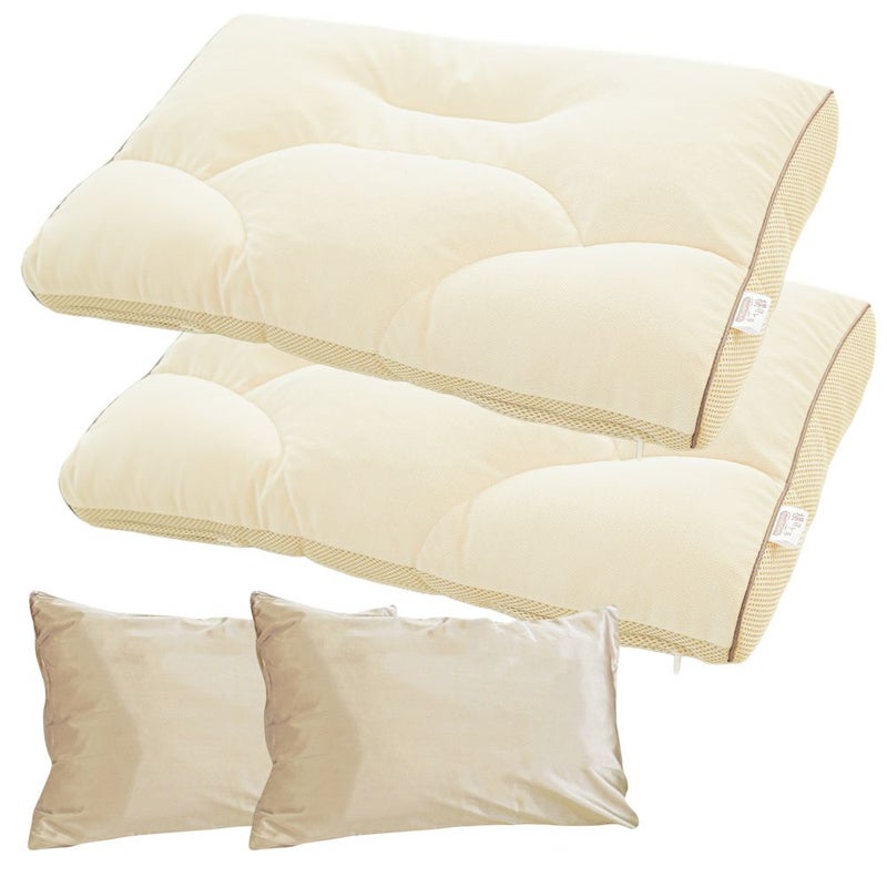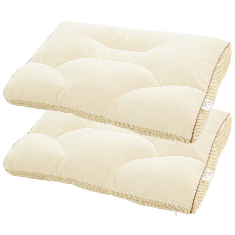 一般的なわた枕は、中央部にボリュームがあり、端にいくほど低くなっているため横向き寝が安定しづらい形状でした。横寝上手枕は、サイドにマチを作ることでまくらの端まで同じ高さをキープ。横向き寝が安定します。