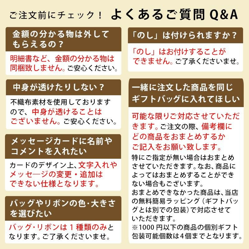 ■ギフトバッグのみご購入の注文は、ギフト対応ができないためキャンセルとさせていただきます。