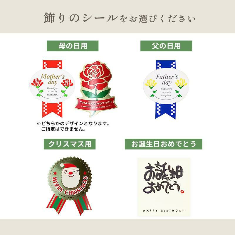 ※父の日、母の日などギフトシーンに応じたシールがご用意できた場合は貼らせていただきます。