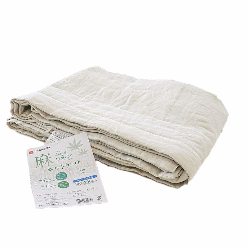 生地も詰め物も全て麻 西川 麻 肌布団 キルトケット シングル 140×200cm