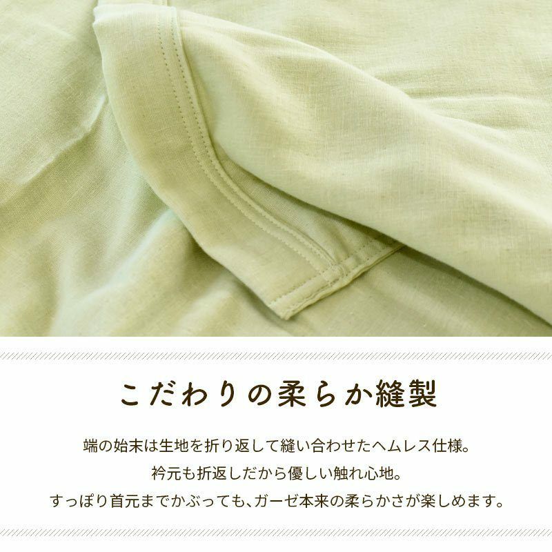 ダブルガーゼを2枚重ねた4重ガーゼのケットです。軽やかさや通気性はそのままに、丈夫に仕上げました。
