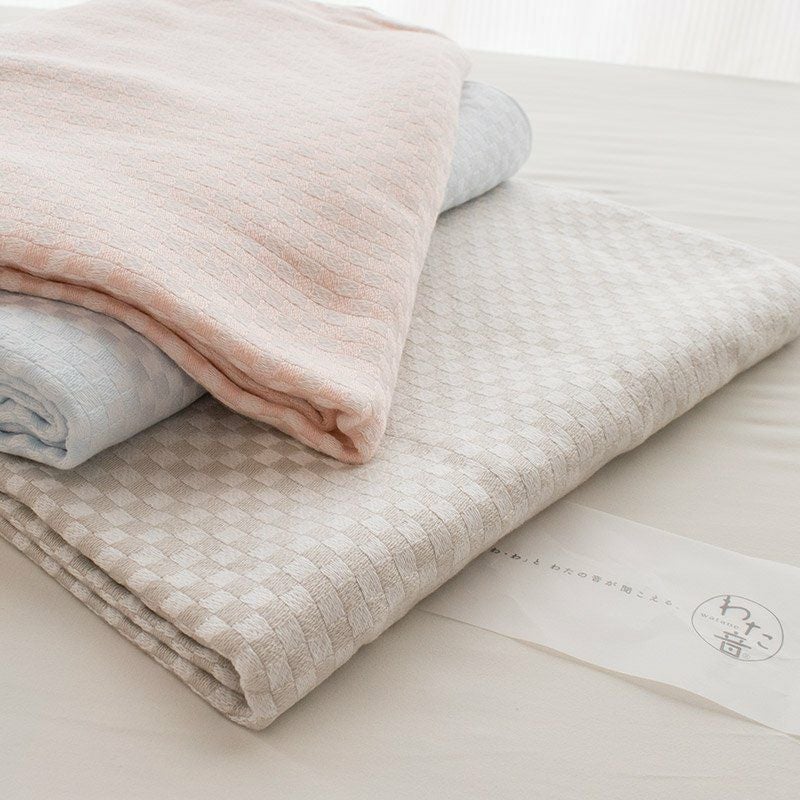 5. シルクのような触れ心地 タオルケット シングル 145×190cm 「わた音」 パイルのないタオルケット 市松模様 今治タオル 日本製