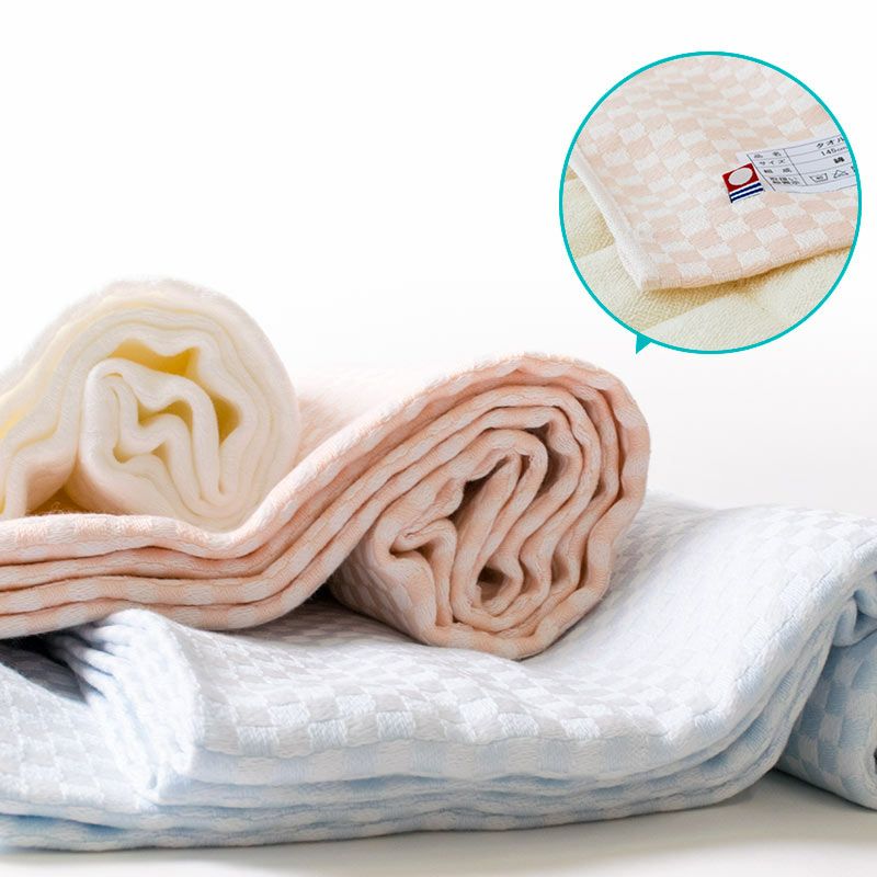 4. シルクのような触れ心地 タオルケット シングル 145×190cm 「わた音」 パイルのないタオルケット 市松模様 今治タオル 日本製