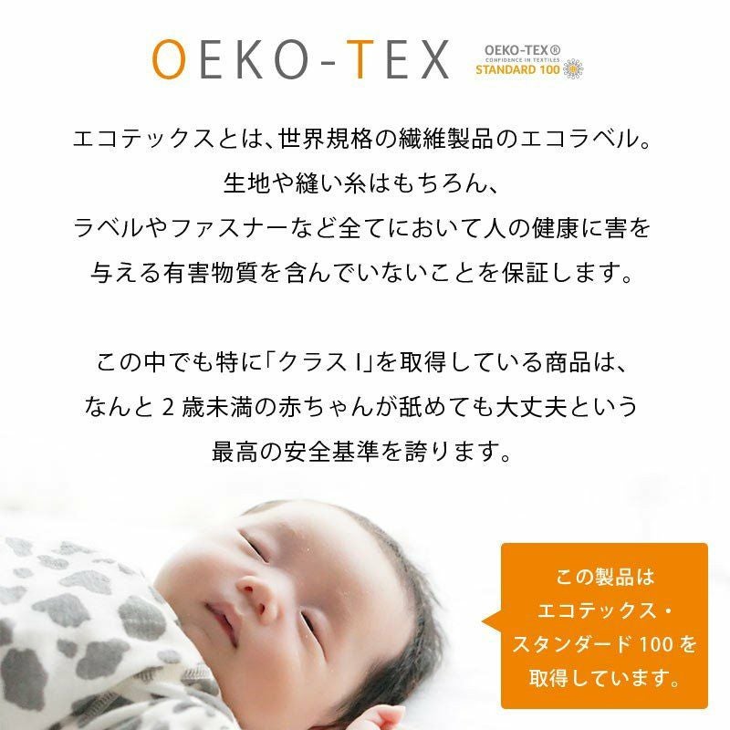 生地や縫い糸、ラベル等すべてにおいて人の健康に害を与える有害物質を含んでいないことを保証する「エコテックス」取得。