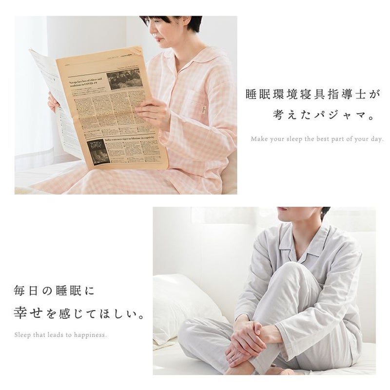 無撚糸2重ガーゼ 快眠ペアパジャマセット 綿100% 日本製 wellneru