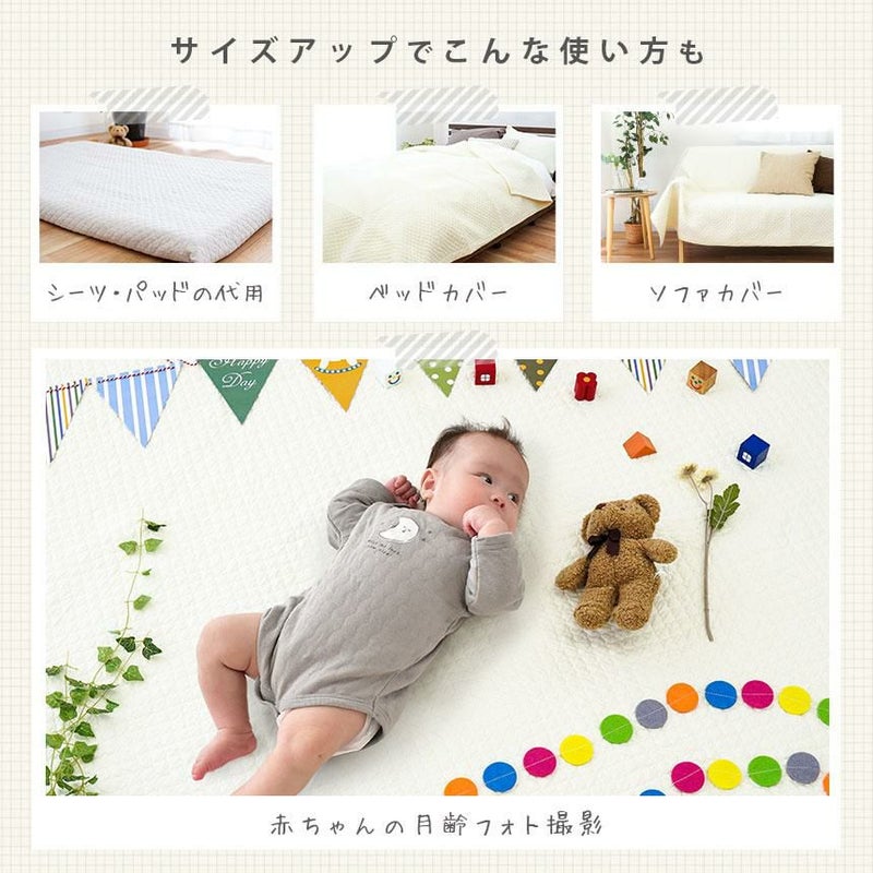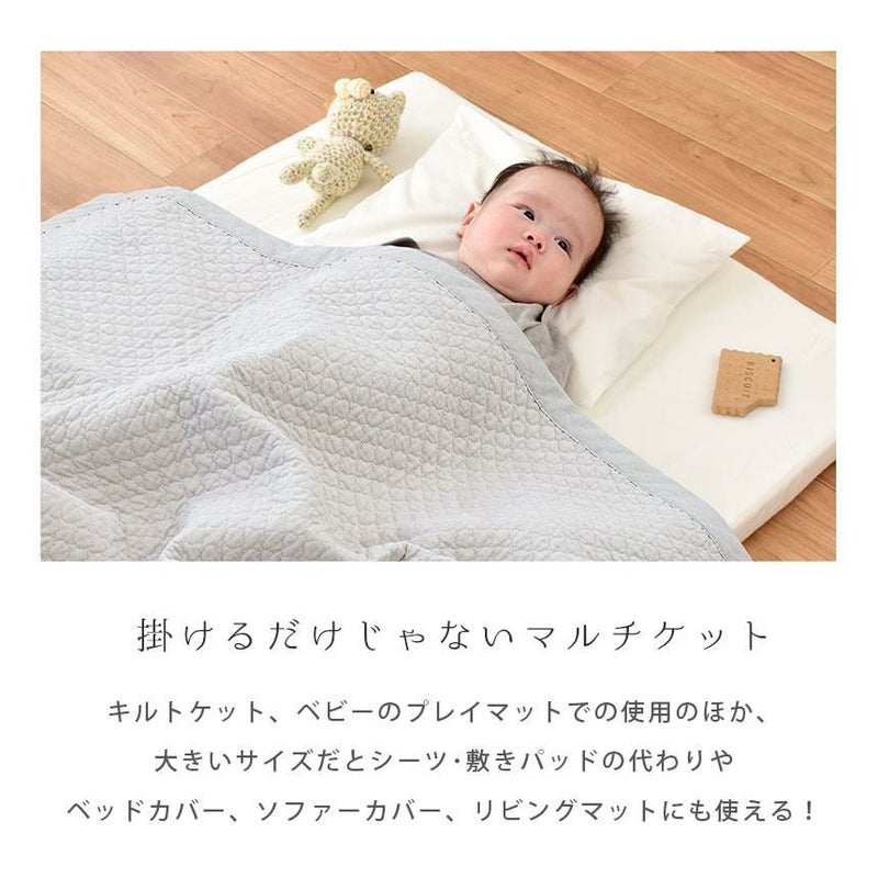 西川とのコラボレーションにより、こだわり安眠館オリジナルのマルチケットができました。ポコポコとしたキルティングがキュート。綿100%の水洗いキルトを使った、お肌をいたわるやさしい寝具。キルトケットはもちろん、キルティングマット、ひざ掛け、おむつ替えマット、ニューボーンフォト、月齢フォト、マルチカバーなどに使えてとっても便利です。
