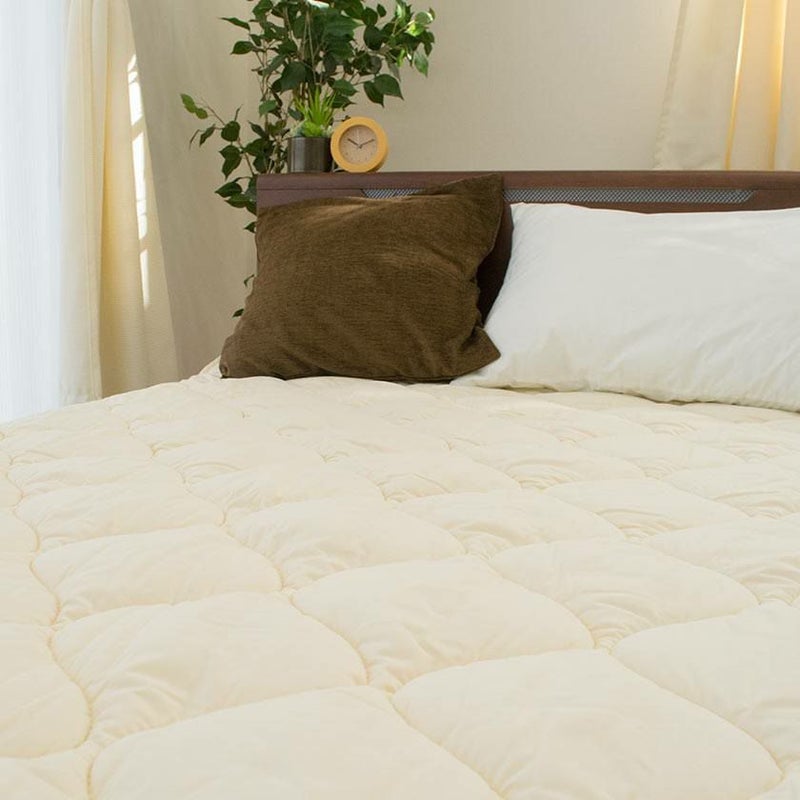 4. ベッドパッド クイーン 160×200cm ウール100% 綿100%生地 洗える 日本製