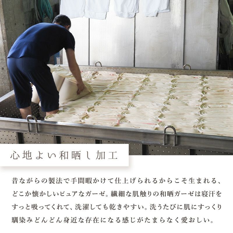 昔ながらの製法で手間暇かけて仕上げられるからこそ生まれる、どこか懐かしいピュアなガーゼ。繊細な肌触りの和晒ガーゼは寝汗をすっと吸ってくれて、洗濯しても乾きやすい。洗うたびに肌にすっくり馴染みどんどん身近な存在になる感じがたまらなく愛おしい。