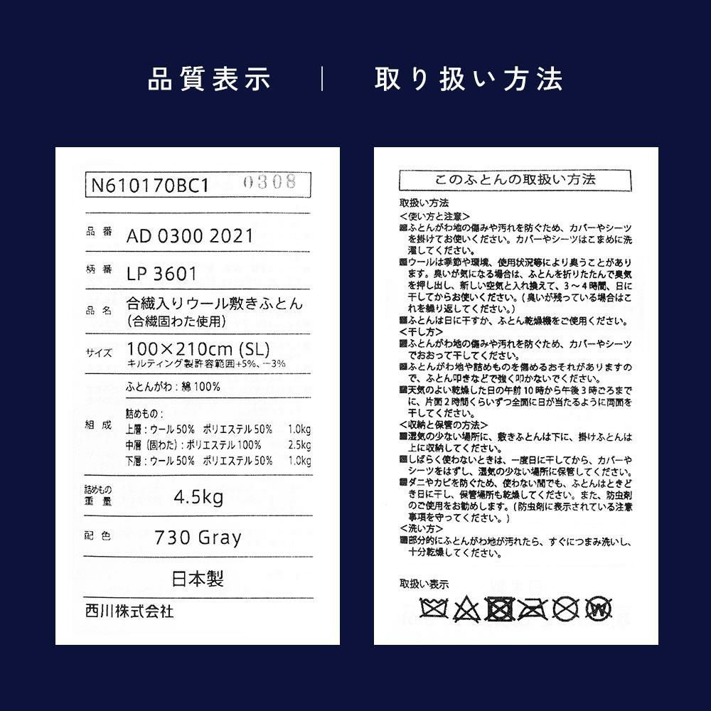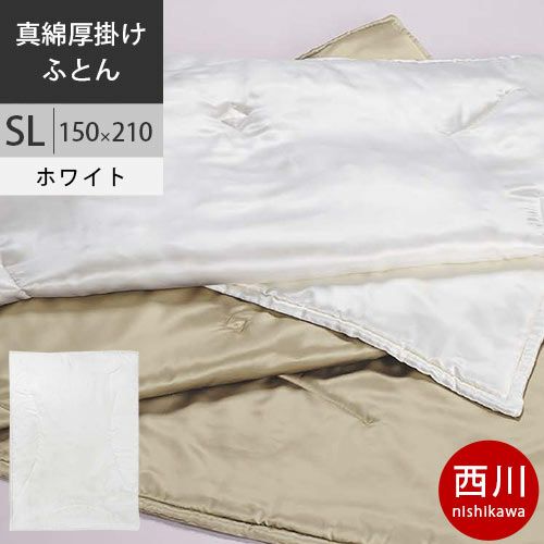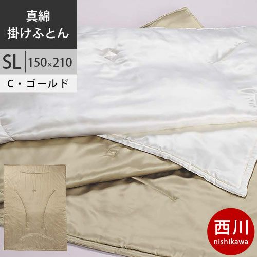 西川 西川プレミアム 真綿布団 真綿厚掛けふとん 絹100% 入金手挽き真綿 SL シングルロング 150×210cm 1.5kg 日本製 NP9651 配色CG シャンパンゴールド 【完全お取り寄せの為、キャンセル不可、代引不可、後払い不可】 【2021AW】