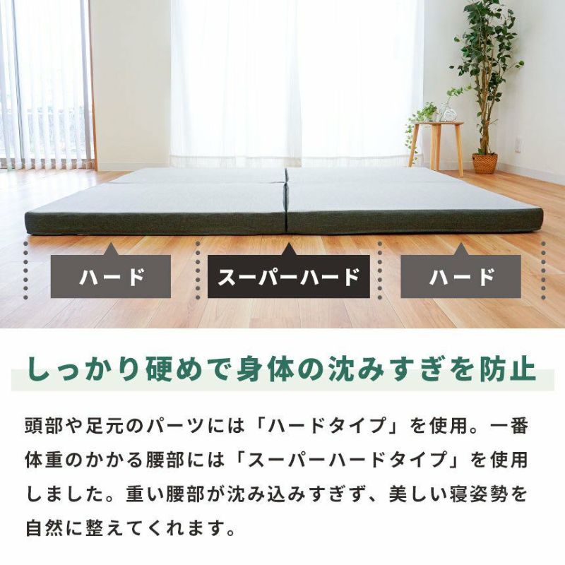 一番体重のかかる腰部にスーパーハードタイプの中材を使用。重い腰部が沈み込みすぎず、美しい寝姿勢を自然に整えてくれます。
