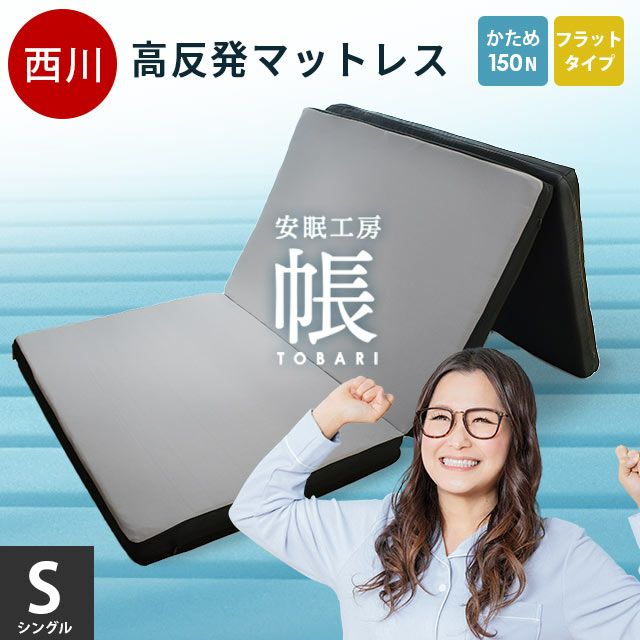 他の画像を見る 在庫切れ 即日発送 会員セール 当社限定 西川 安眠工房シリーズ 帳-tobari- フラットタイプ マットレス 折りたたみ シングル 97×195cm 厚み8cm ¥ 17,800 税込 会員セール価格 ¥ 16,020 税込 お気に入りに登録する