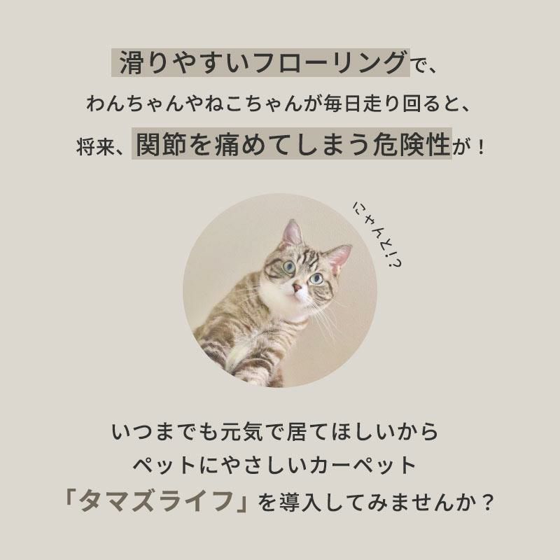 猫や室内犬などのペットを飼っている方にオススメ!カットパイルでペットの爪も引っかかりにくく、走っても滑りにくいカーペット。