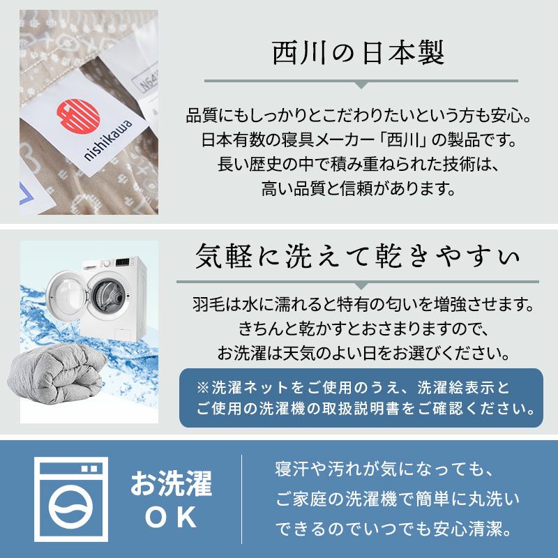 西川 増量タイプ ダックダウン90% ダウンケット シングルロング
