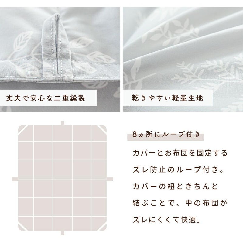 植物をモチーフにした、当店限定のオーガニックな北欧調デザインです。インテリアに合わせやすいグレーとベージュの2色展開。毎日の暮らしに寄り添う落ち着いた色合いが、寝室をよりリラックスできる洗練された空間へと演出します。