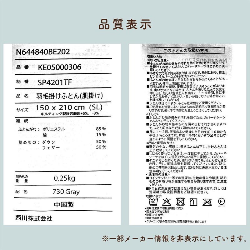 5. 西川 洗える 羽毛肌掛け布団(ダウンケット) シングルロング 150×210cm ダウン50% 北欧デザイン