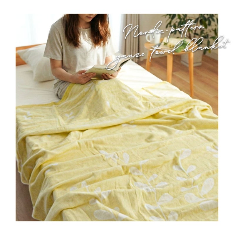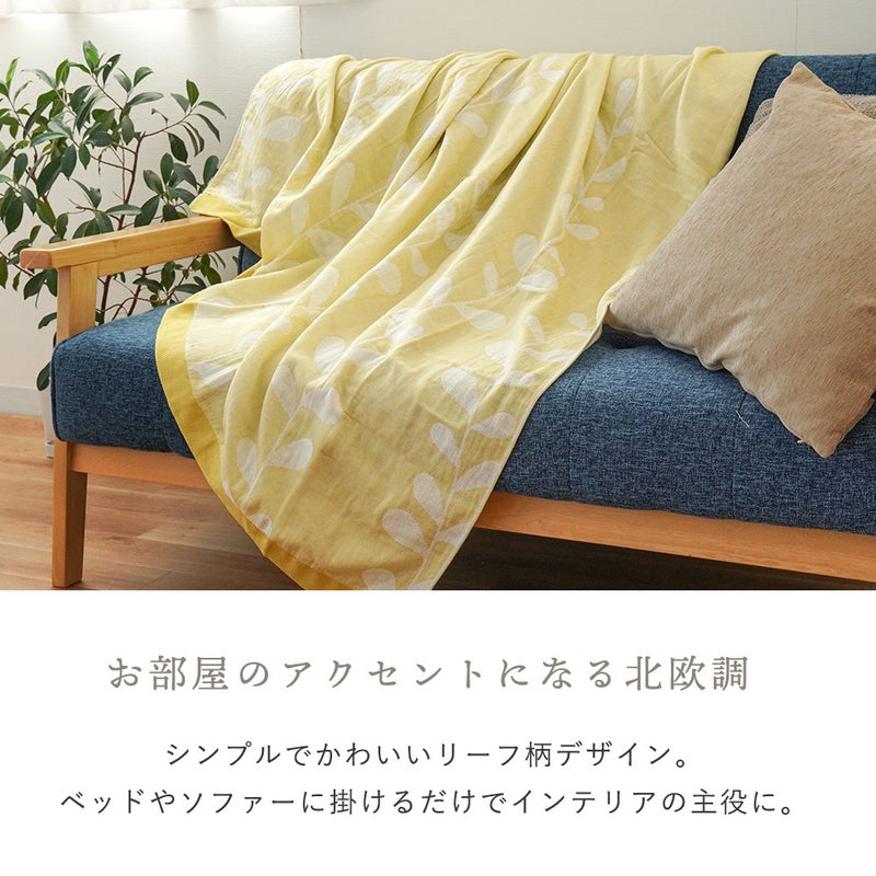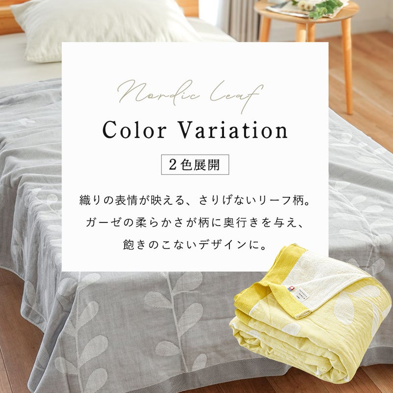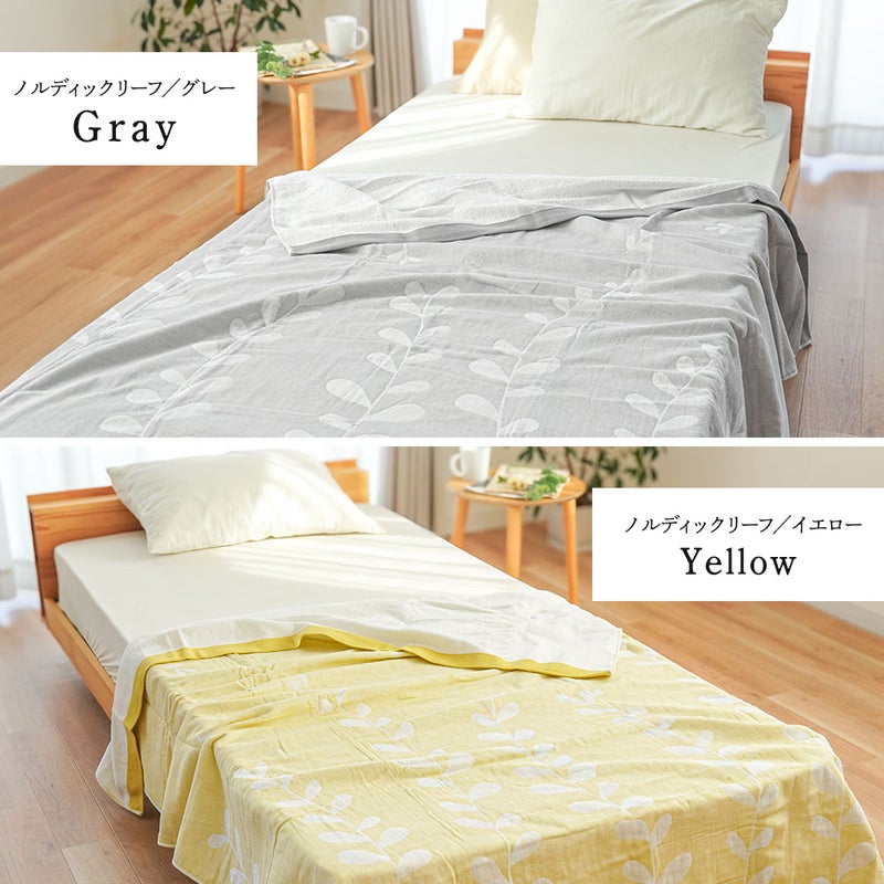 4. 5重ガーゼ×パイル リバーシブルケット シングル 綿100% 日本製 今治タオルブランド認定 北欧リーフ柄