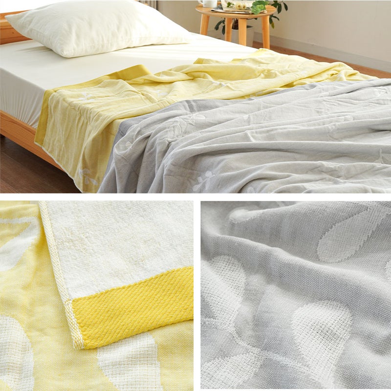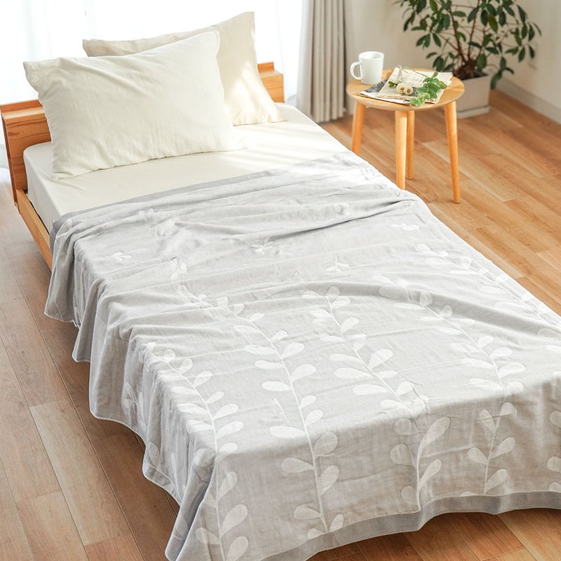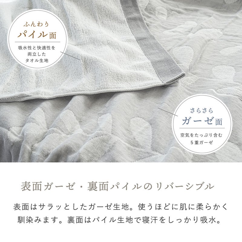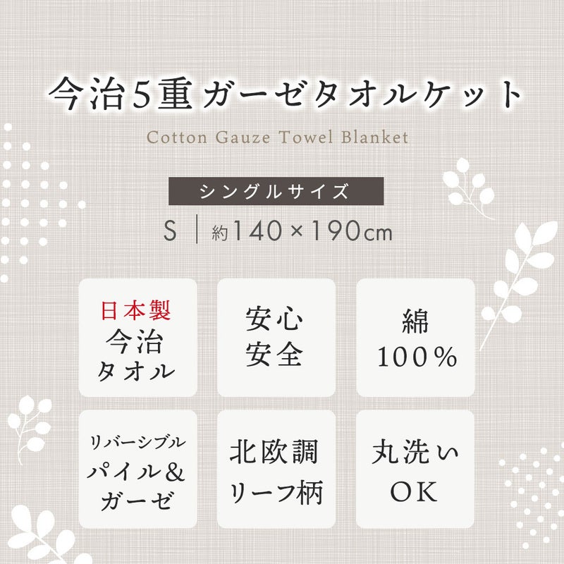 5. 5重ガーゼ×パイル リバーシブルケット シングル 綿100% 日本製 今治タオルブランド認定 北欧リーフ柄