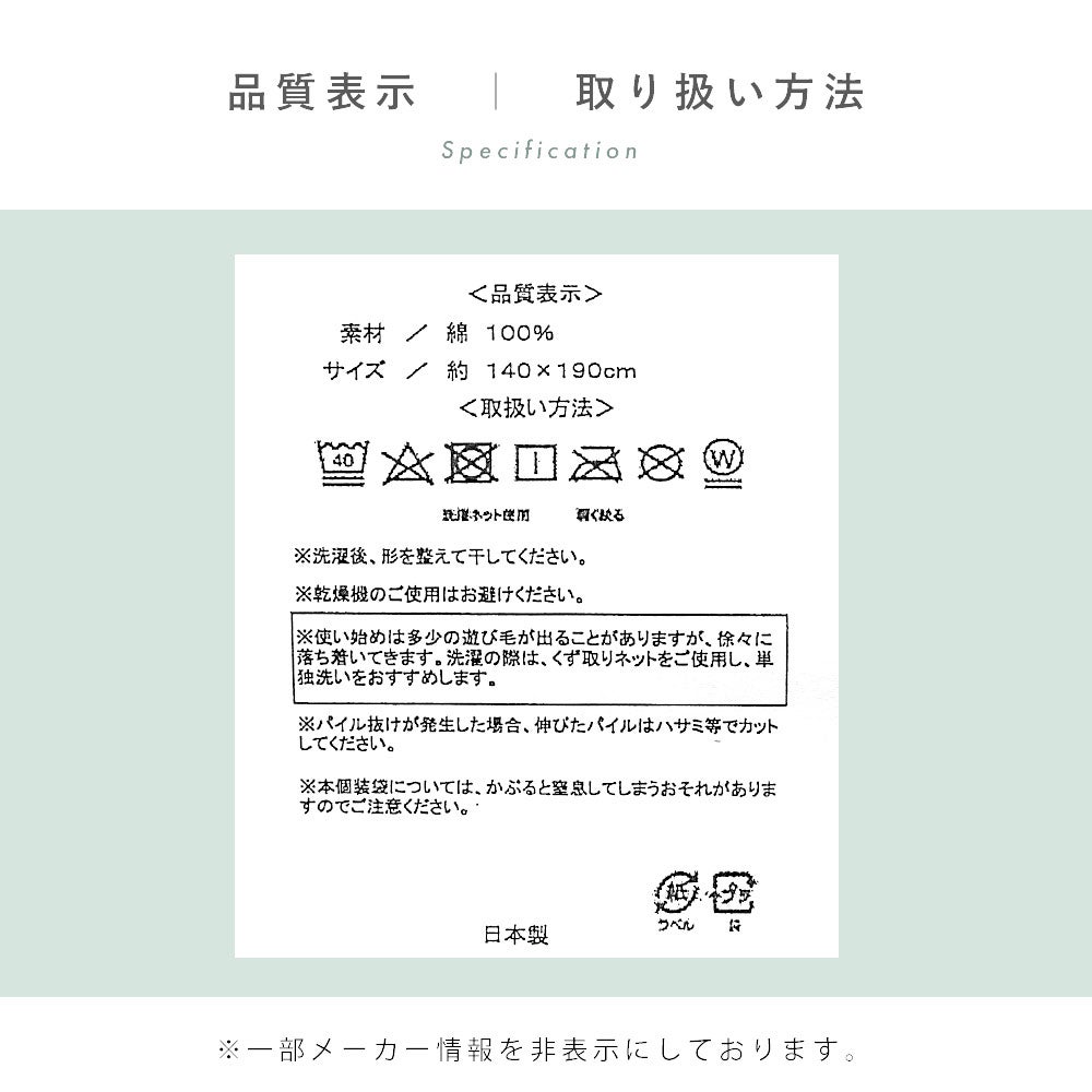 サイズ 約 140 × 190 cm / シングルサイズ