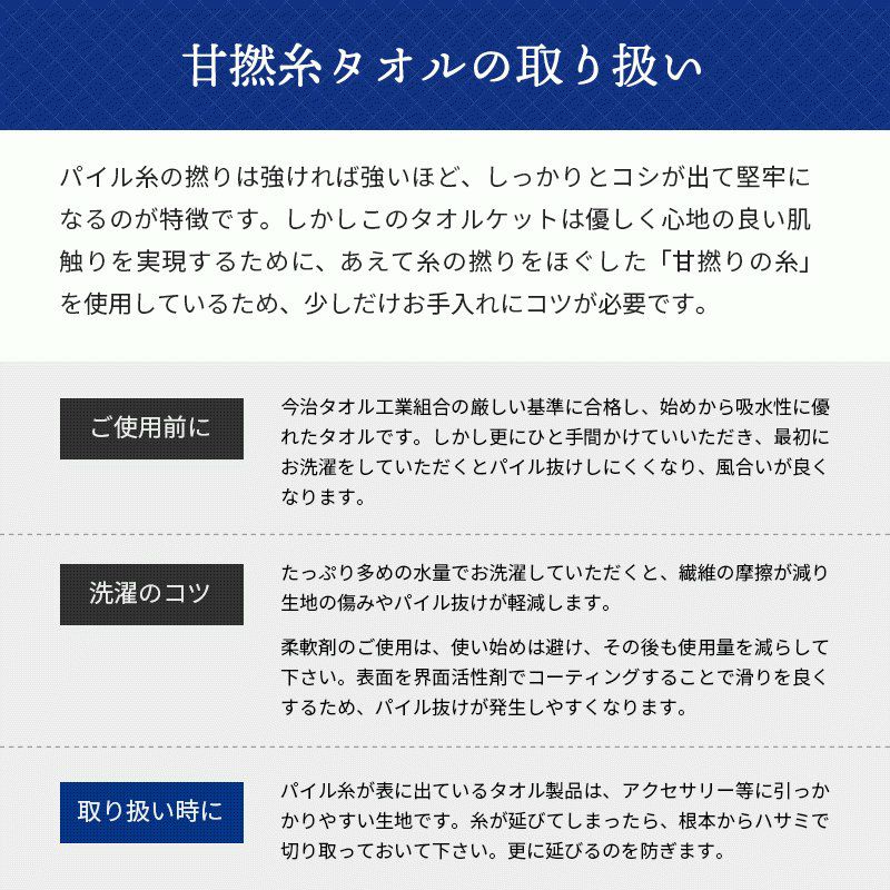 • タオル製品のパイルは、強い摩擦や引掛けにより引き抜けやすいものですので、取扱いには注意して下さい。
